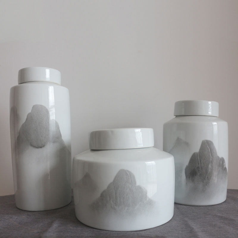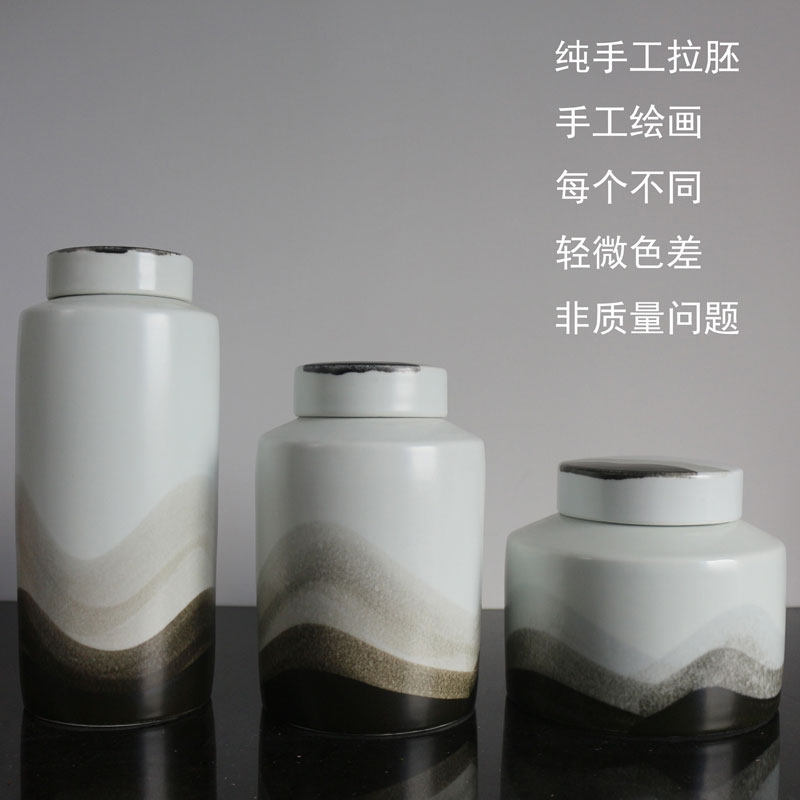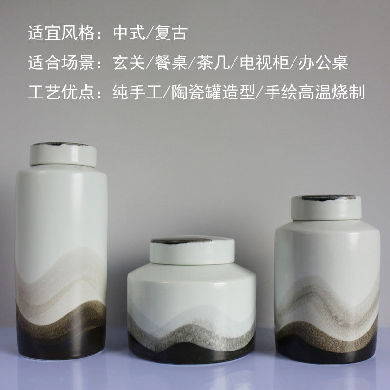 New Chinese-style ceramic storage jar ornaments handmade with lid jar home sample house display center model room soft decoration flower arrangement jar
