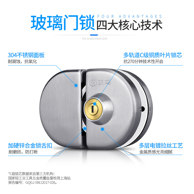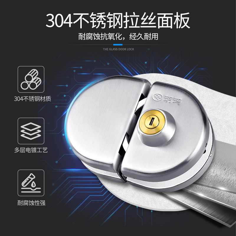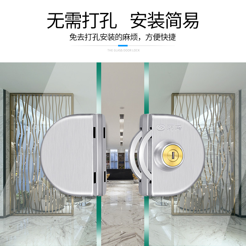 Yuema double door glass door lock free of drilling and push-pull single door lock stainless steel shop office double switch moving door lock