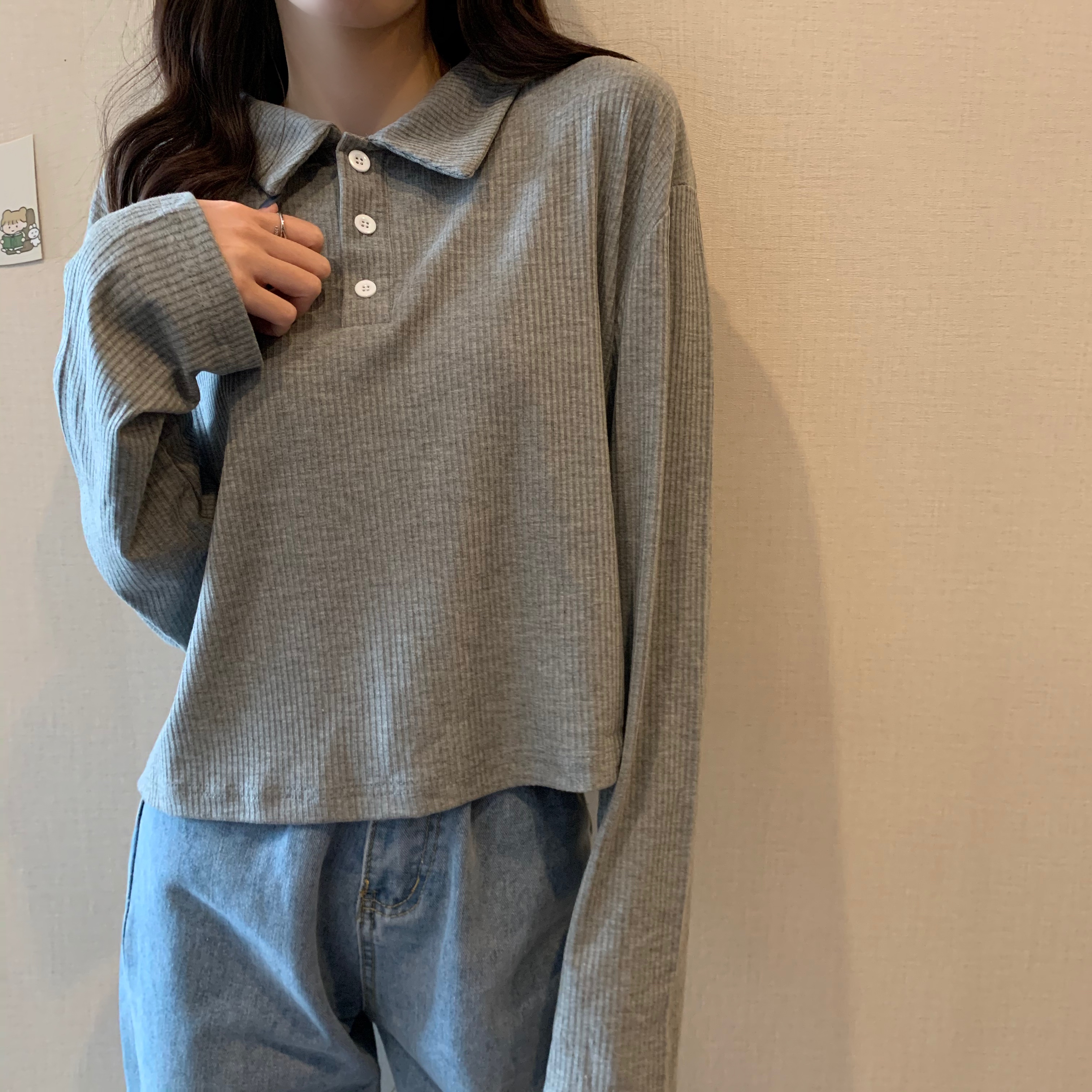 Black long sleeve T-shirt female inner lap polo collar bottom shirt 2022 new spring autumn loose Korean version shorts