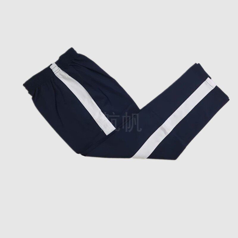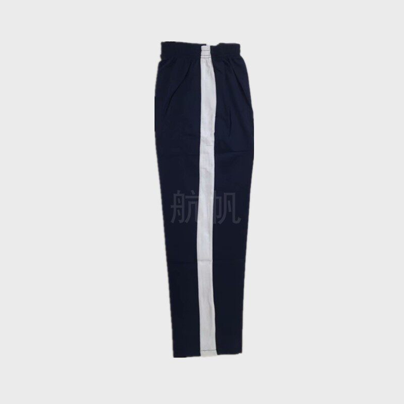 Book high school students boys and girls uniform pants dark blue side splicing white road pants pure cotton school pants