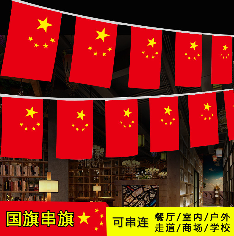 Middle Autumn National Holiday Decorations Pendant Atmosphere Arrangement Shop Mall Middle School Flag String Flags Five Stars Red Hanging Banner-Taobao