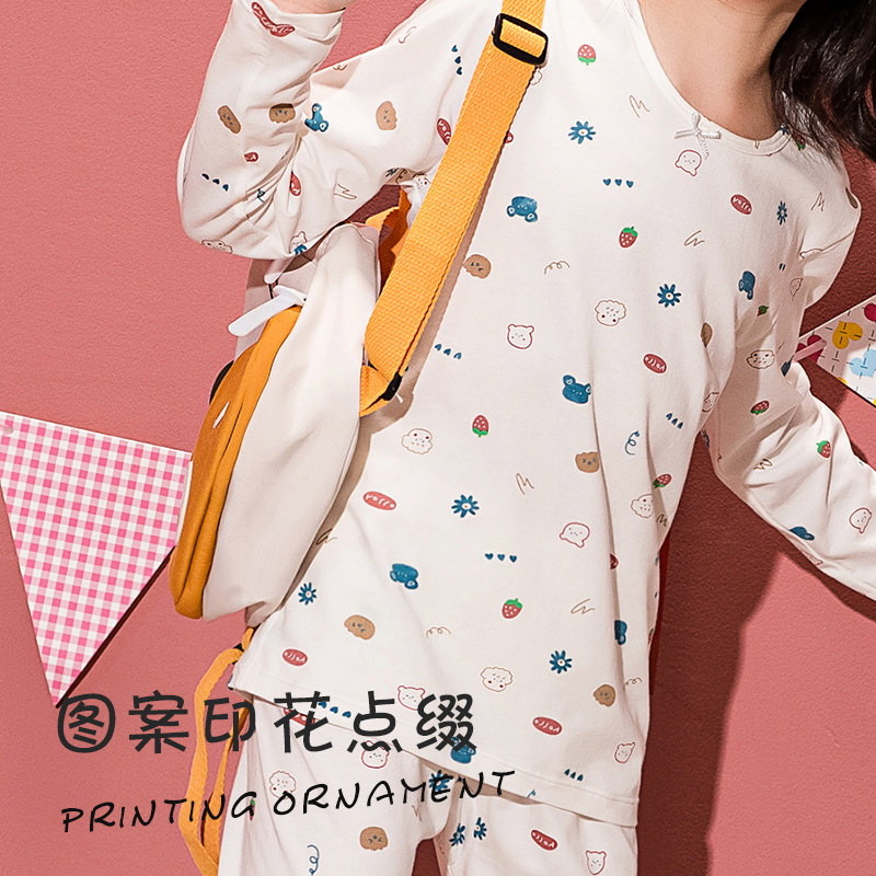 Fenteng Children's Cotton Autumn Clothes Sanitary Pants Set Girls' Heat Shirts Thin Section Middle and Big Children's Bottoming Cotton Sweater Pajamas