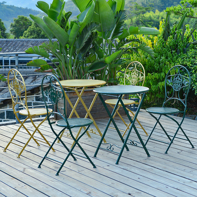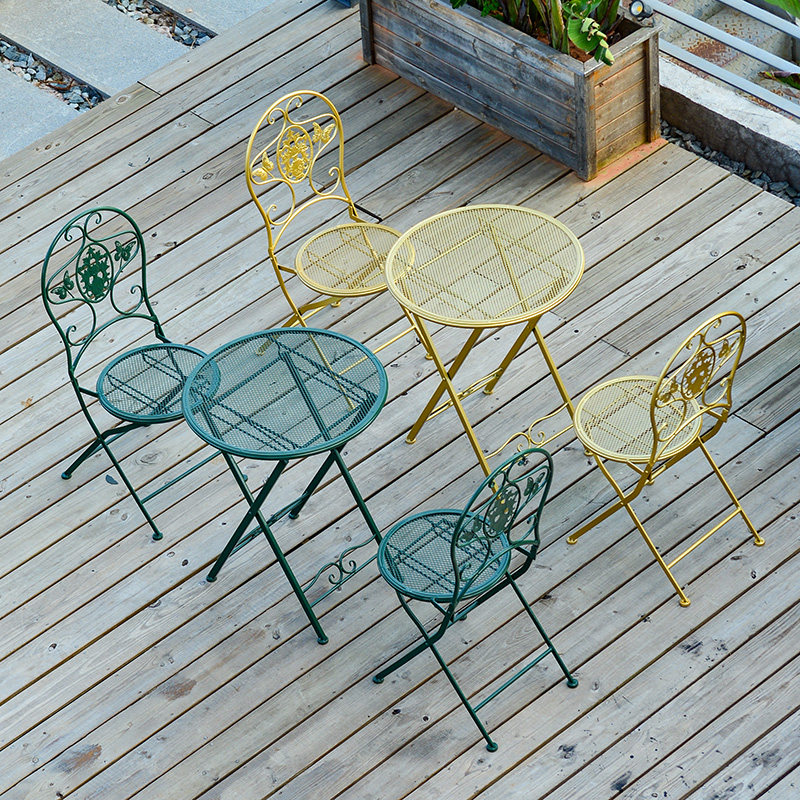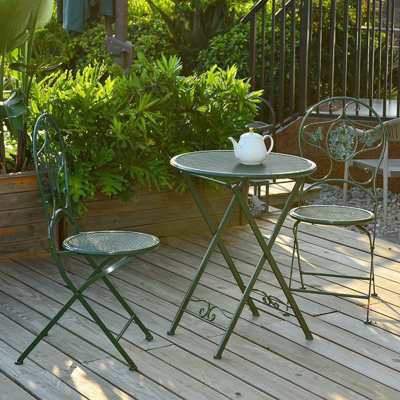 Outdoor table and chair courtyard outdoor folding tea table and chair iron three-piece set balcony simple leisure combination small coffee table