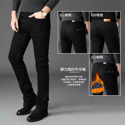 Black jeans men's straight loose pants men's Korean version of the tide high-end plus velvet autumn men's pants elastic slim-fit trousers