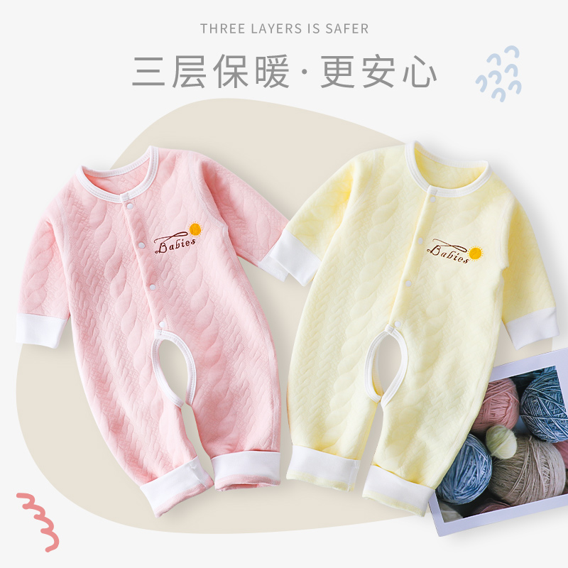 Newborn baby clothes warm jumpsuit Autumn and winter suit Male and female baby open crotch Newborn Haiyi climbing clothes cotton padded