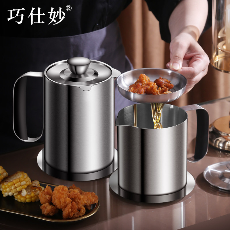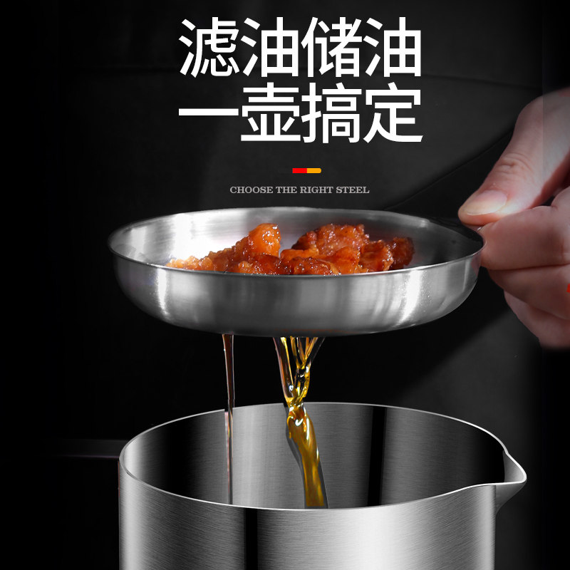 Filter oil pot 304 stainless steel oil filter tank kitchen frying oil filter oil artifact bottle with filter screen oil storage tank leaching oil residue