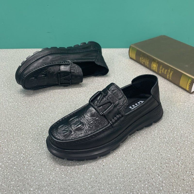 2022 new leather beanie shoes thick bottom top layer cowhide leather shoes all-match slip-on men's shoes casual trend autumn