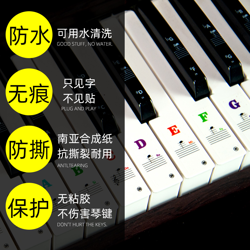 Piano keyboard stickers 61 keys 88 keyboard hand roll piano key stickers spectrum Jane staff keys key phonetic stickers