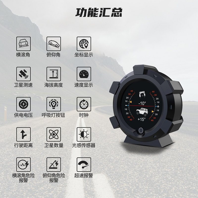 Auto HUD head-up display Car level grade meter GPS speed altitude high precision off-road balancer