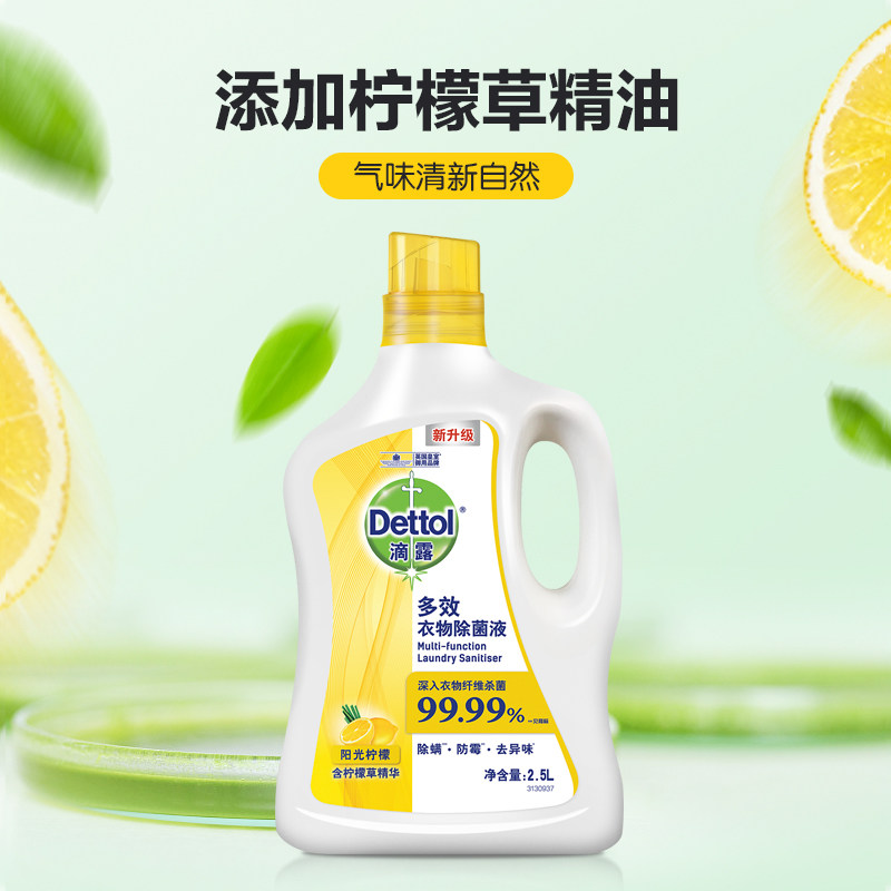 (Shaw Fight Same) Drop-dew Dettol Multi-effect clothing Bacteria Liquid Sunshine Lemon 2 5L washed clothes bacteriostatic