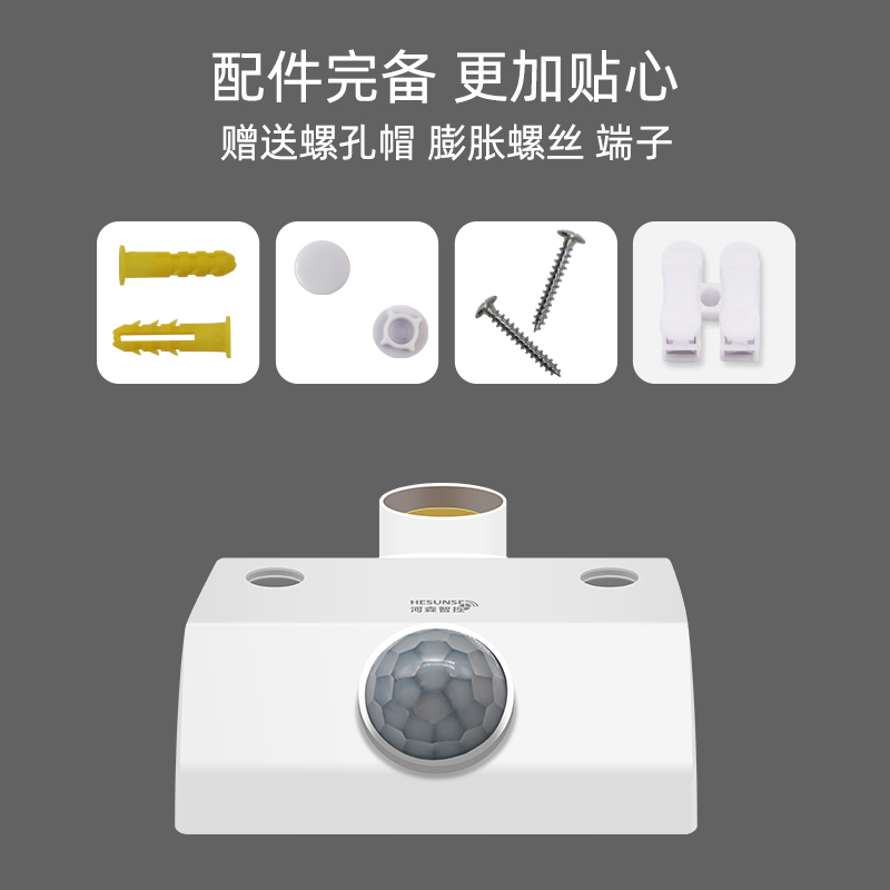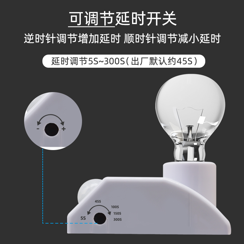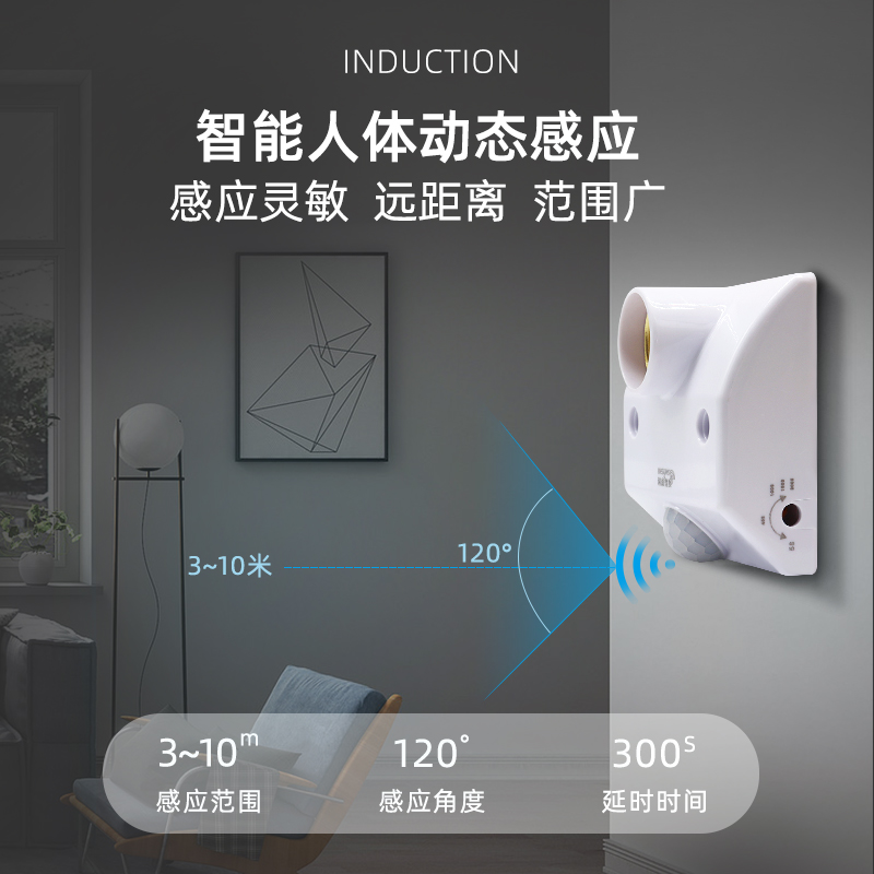 Human body sensor switch E27 screw lamp holder Corridor adjustable delay infrared sensor LED lamp base Household 220V