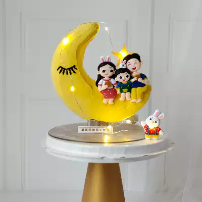 Net celebrity bunny acrylic birthday cake decoration Mid-Autumn Festival eating moon cake baking decoration plug-in moon bracket