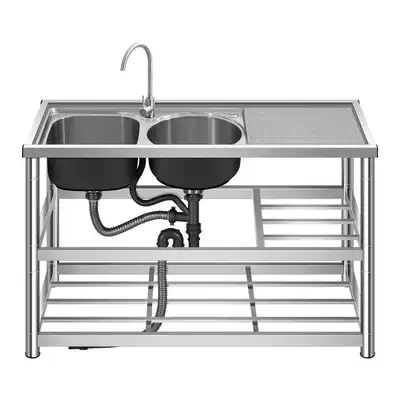 Stainless steel wash basin double sink double sink sink sink sink sink sink with bracket platform thickened household kitchen rental house