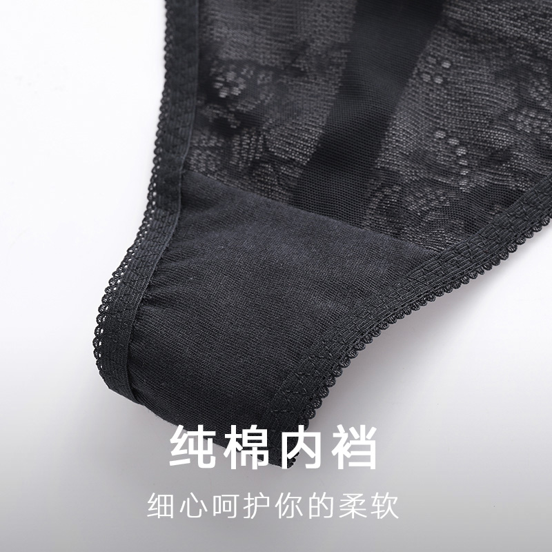 Maniform women's panties romantic lace low waist T pants lace clear mesh cotton crotch 20612098
