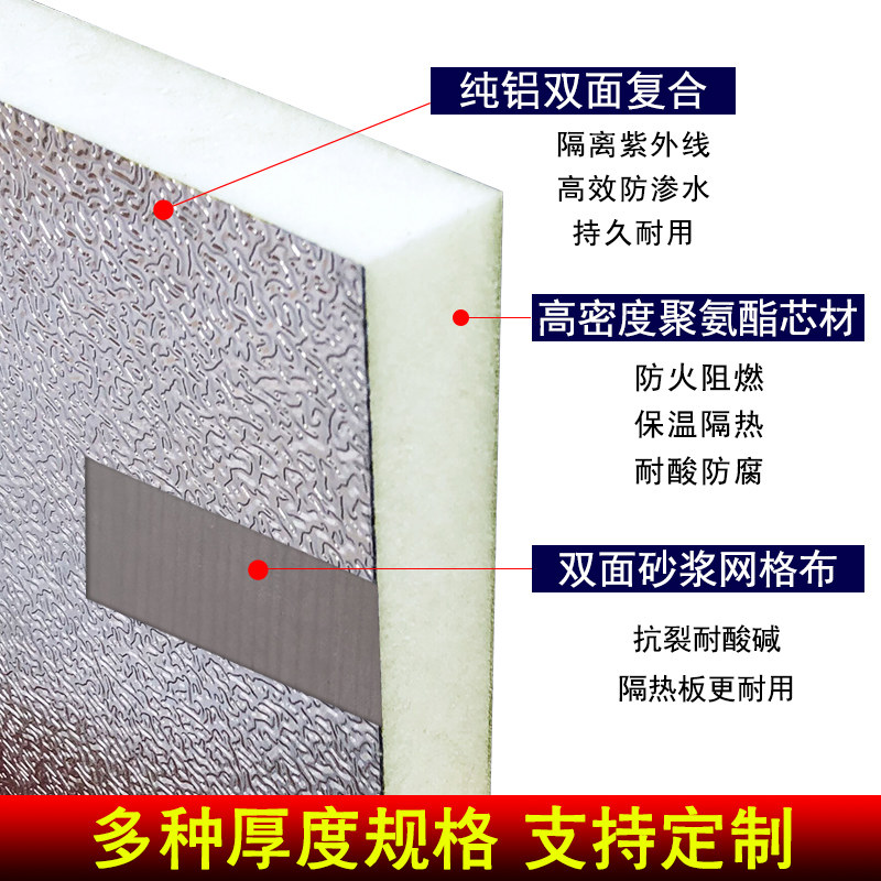 Insulation board roof sun roof wall insulation thickened aluminum foil polyurethane insulation board indoor and outdoor cold storage materials