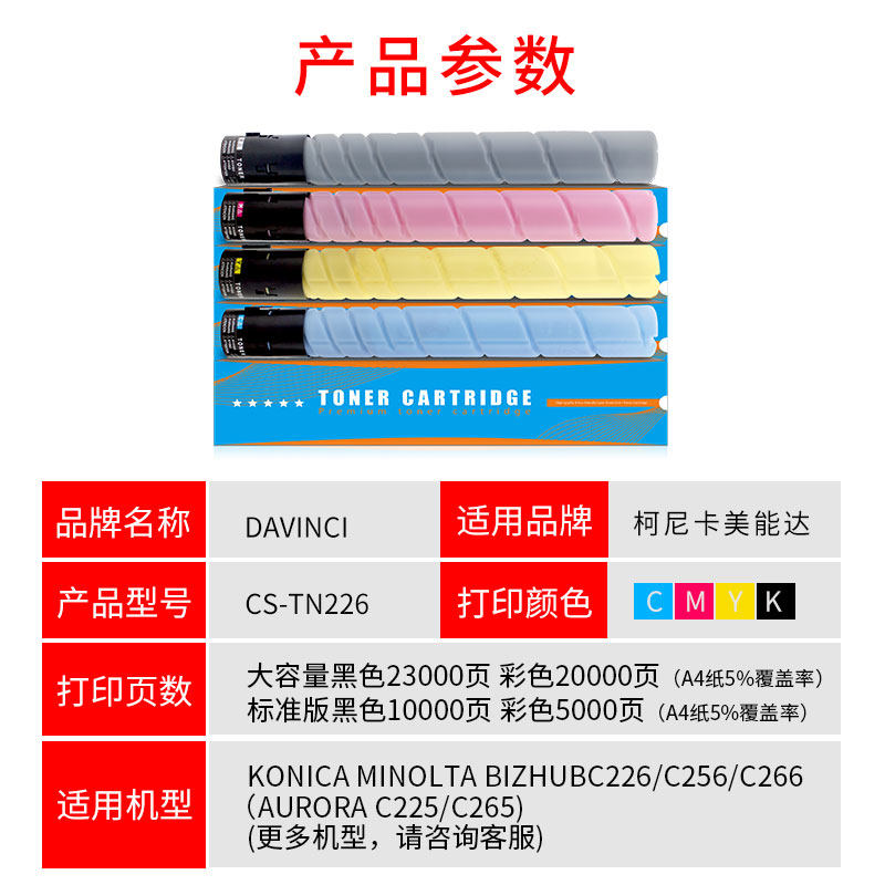Suitable for Konica Minolta c226 cartridge bizhub C7222 C256 TN223 toner cartridge Konica Minolta 266 C7226 cartridge ADT265 shadow