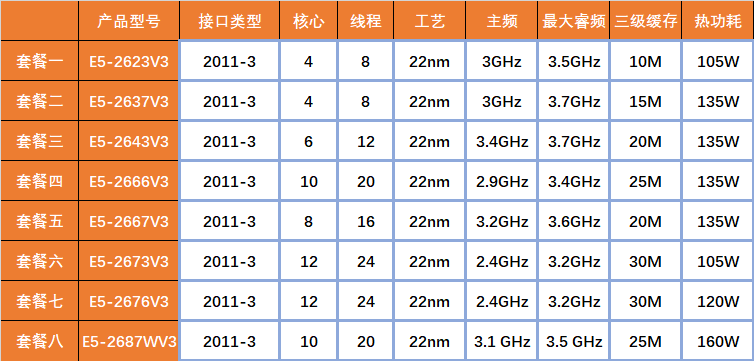E5 2623V3 2643v3 2637 2666v3 2667 2673v3 2676v3 2687Wv3 x99