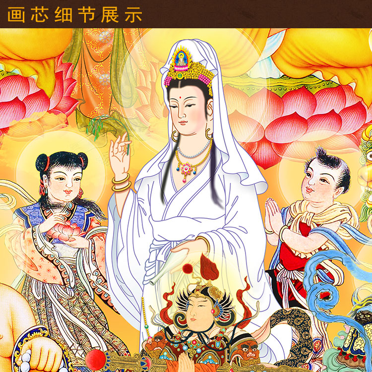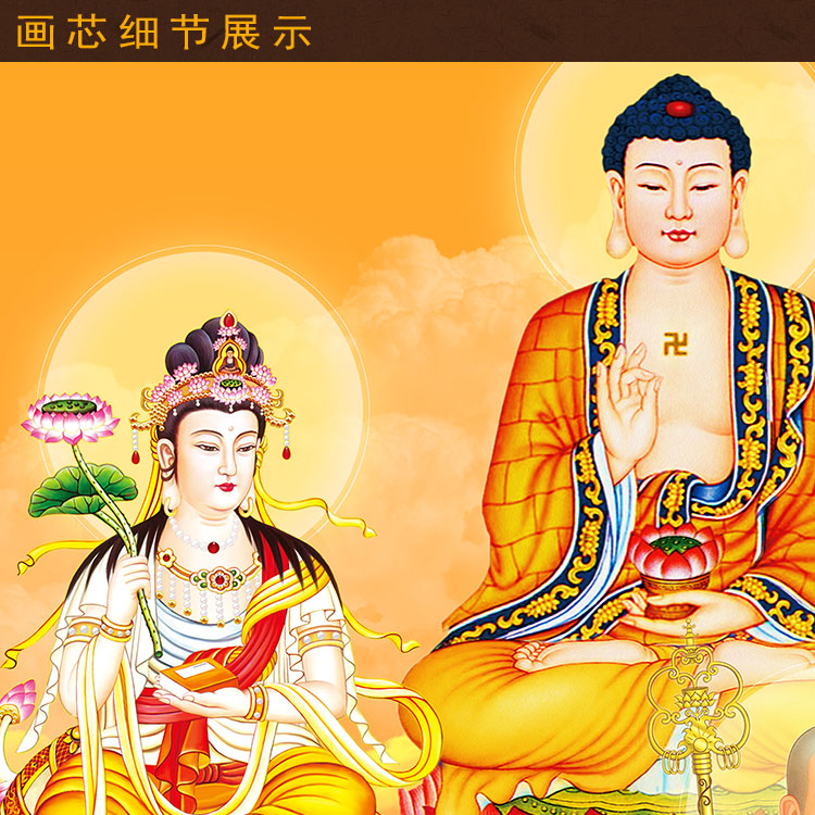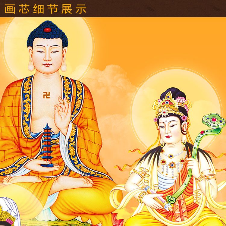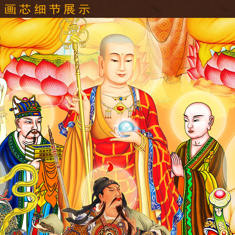 Quantang Buddha horizontal painting Whole Buddha picture Rulai Buddha Manjushri Puxian Bodhisattva portrait Jizo King Guanyin silk painting