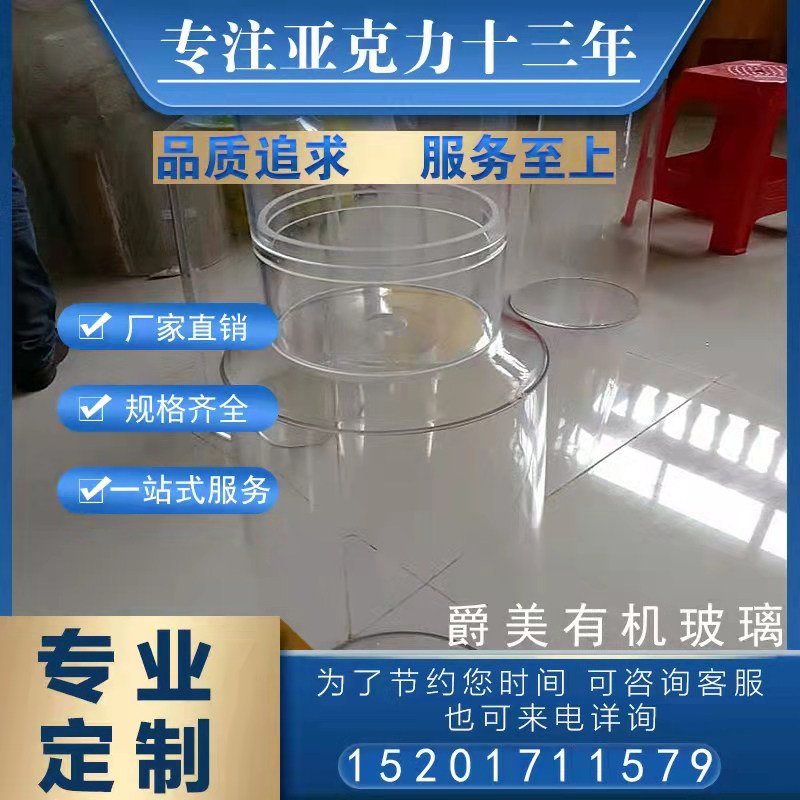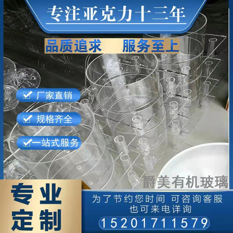 Acrylic organic glass PMMA distilling device machined to formulate custom acrylic hollow transparent tube
