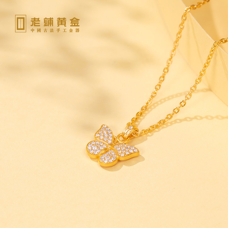 Old shop point diamond ancient method handmade gold inlay diamond butterfly choker gold jewelry