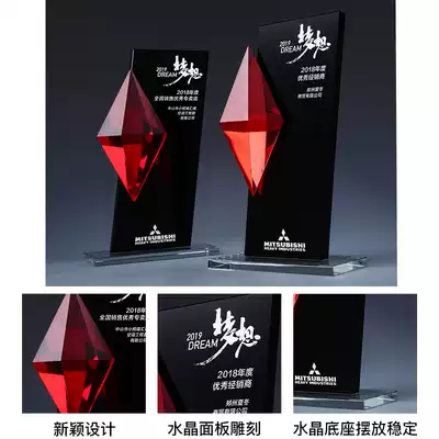 Creative Crystal Trophy Customized Trophy Customized Red Diamond Annual Meeting Excellent Employees Enterprise Awards Commemorative lettering