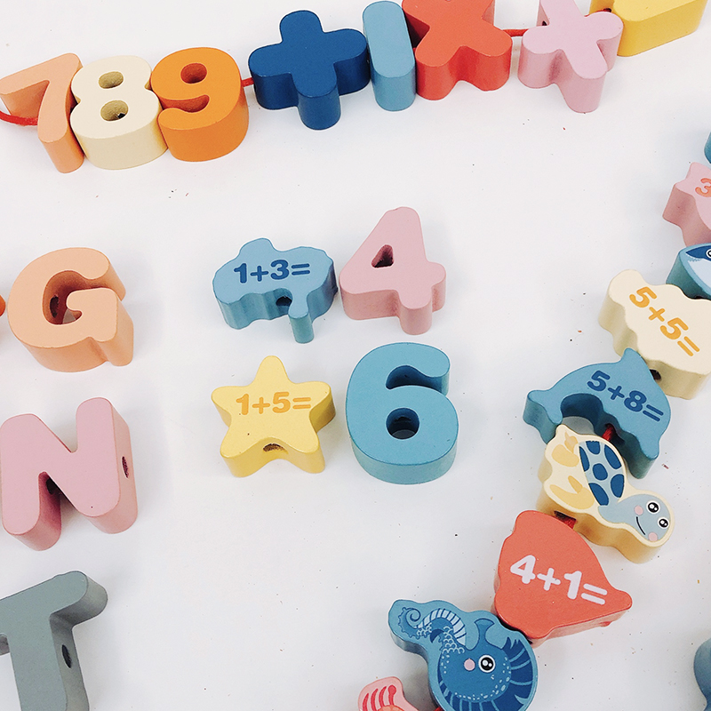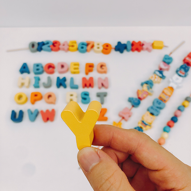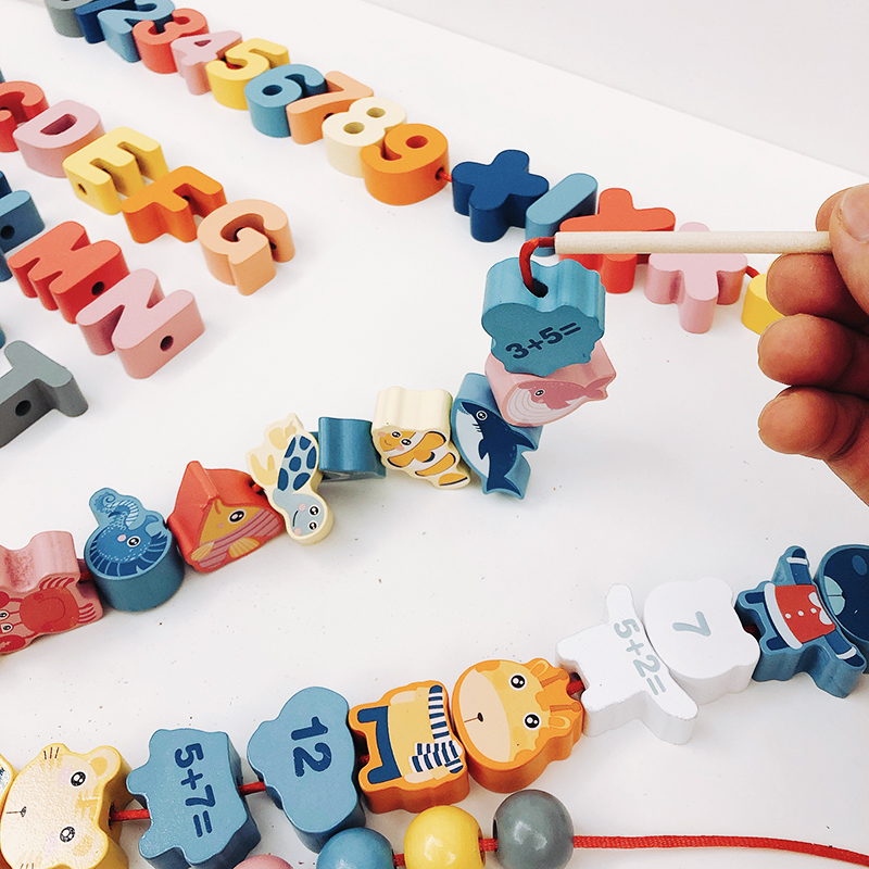 Wooden Strings Beads Children Toys 78 Large Grain Letters Digital Animals Wear Rope Building Blocks Special Force Training 345 years old