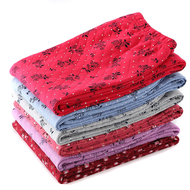 Add fertilizer and increase women's pure cotton quilted high waist loose loose leg warm pants three layers medium thick winter mother's thin cotton pants