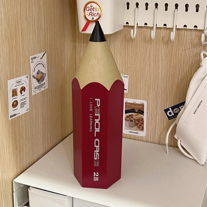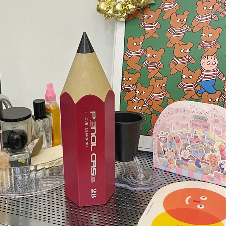 ins wind cute yellow pencil styling pen holder makeup brush box household with lid dust-proof stationery storage tube