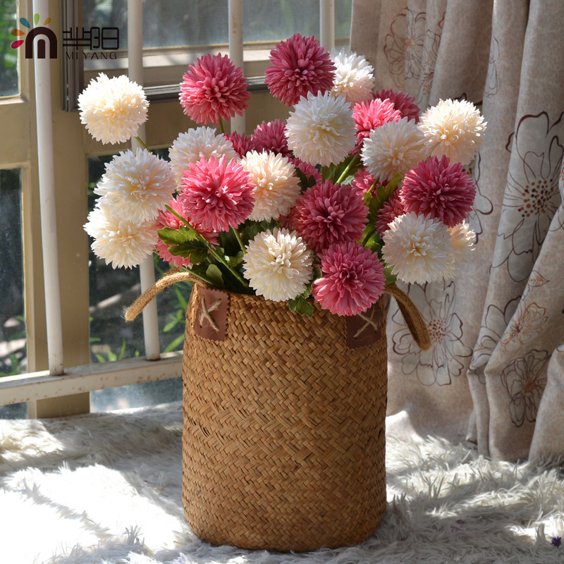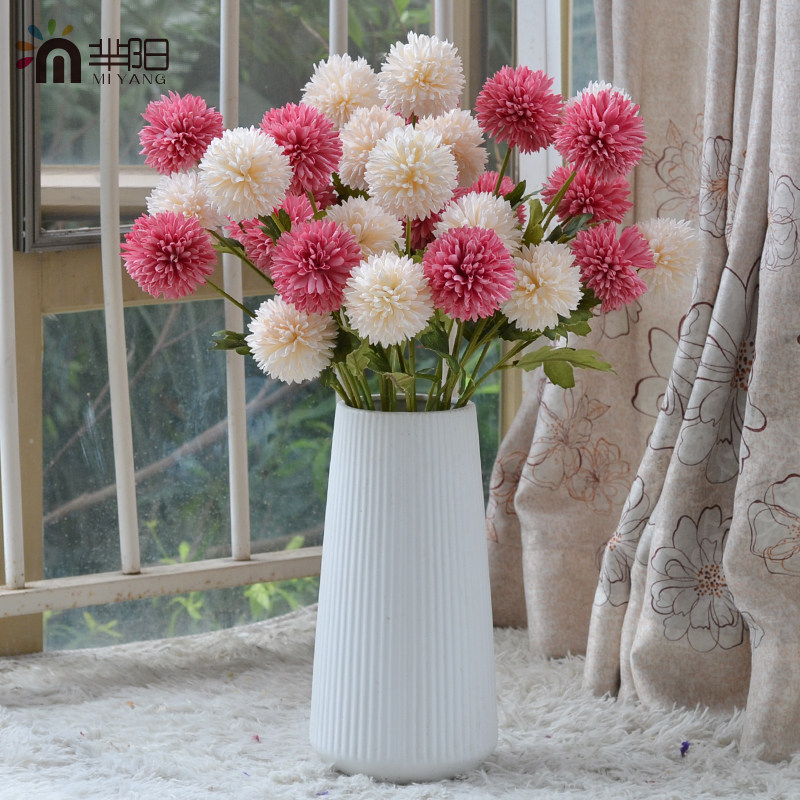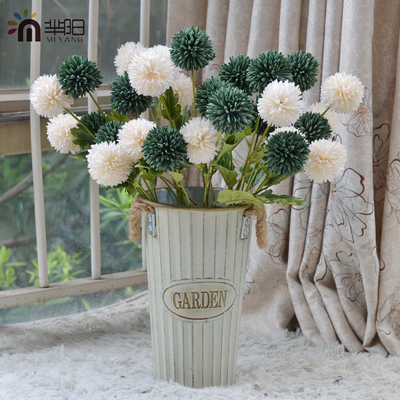 Vintage imitation hydrangea dandelion bouquet light luxury living room decoration fake flower arrangement dining table ornament silk flower