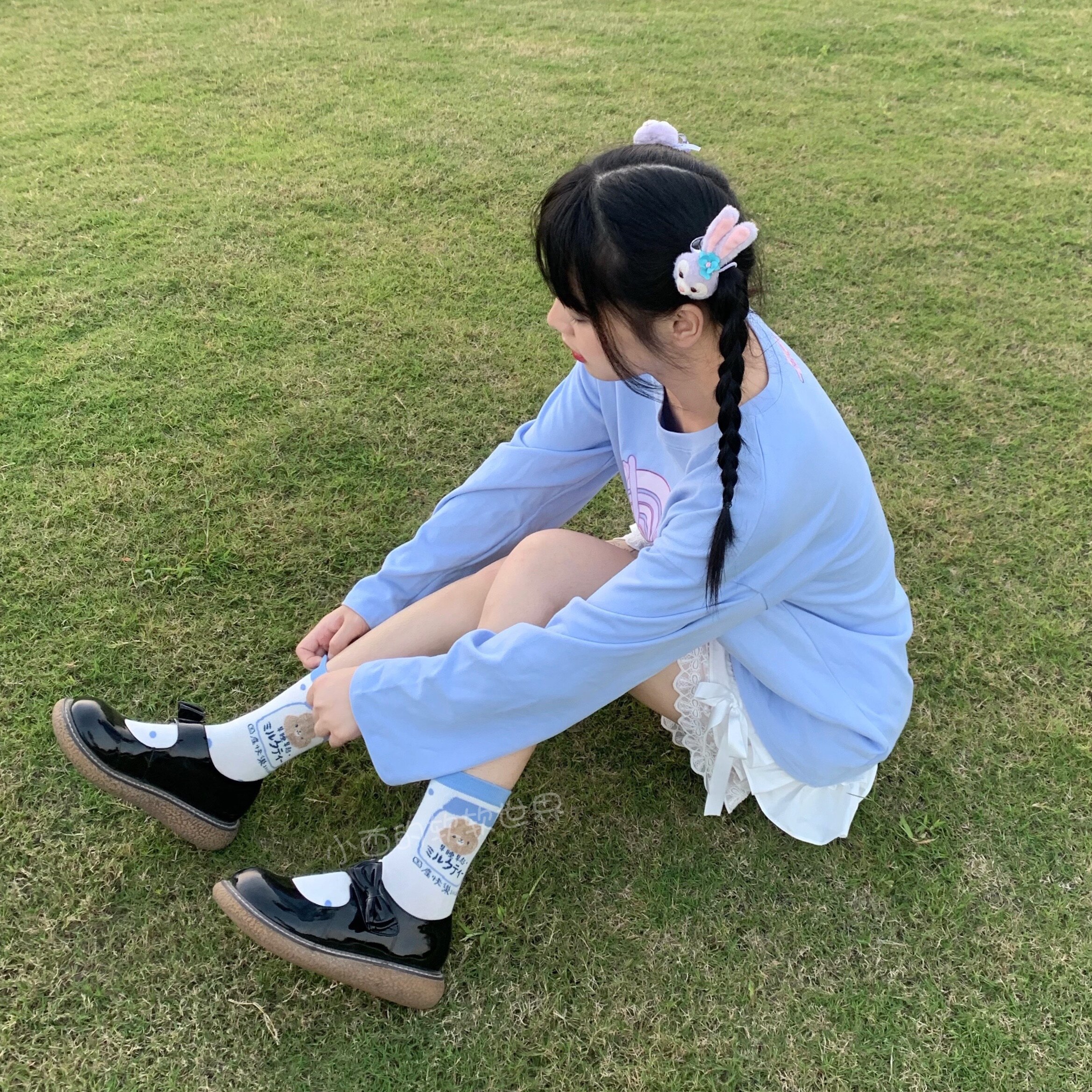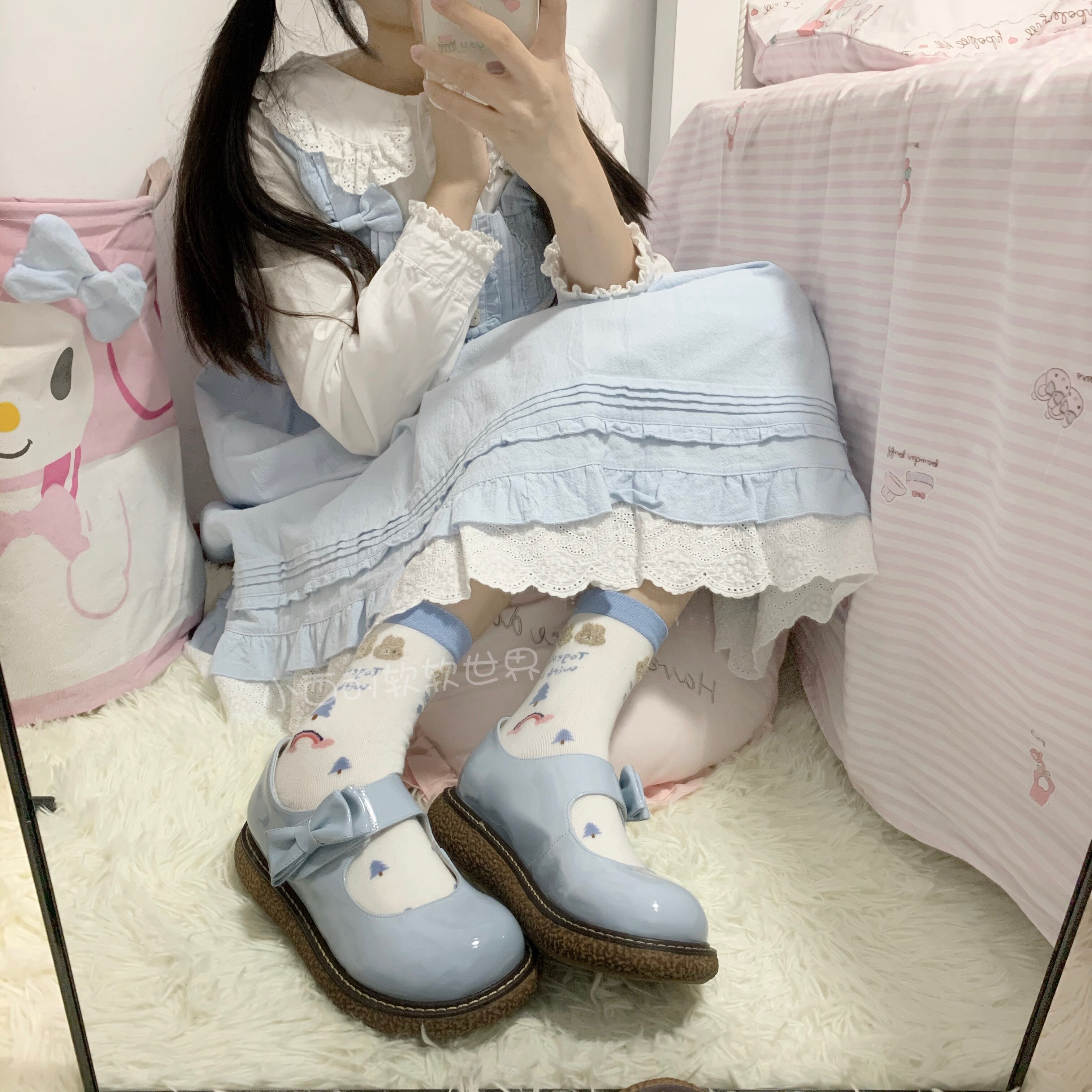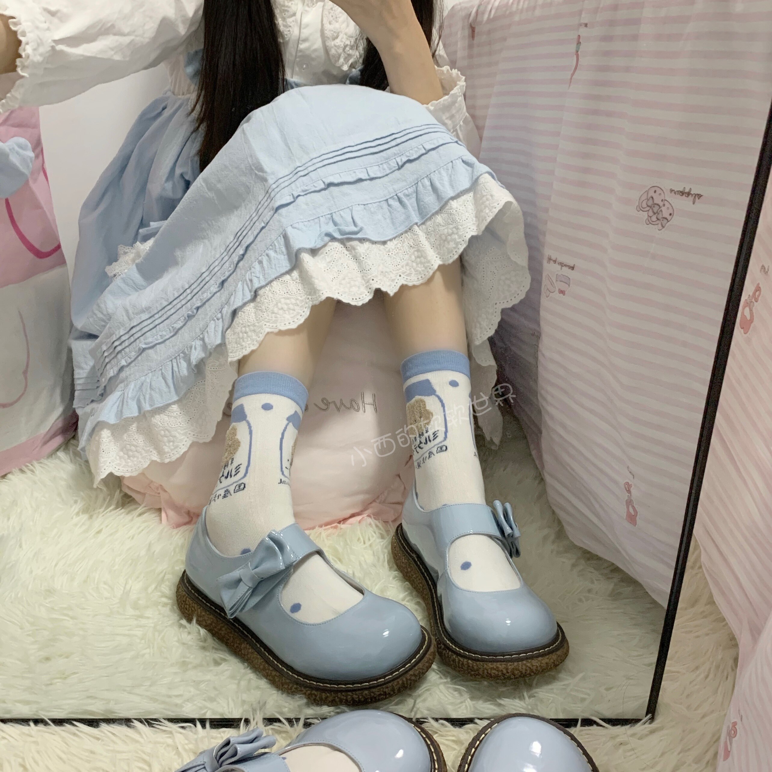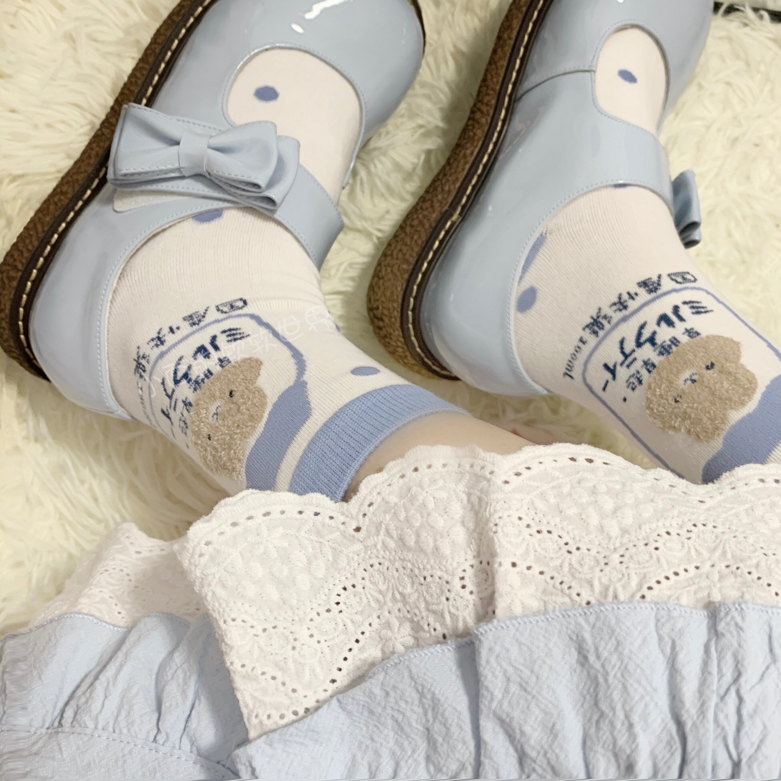 Xiaoxi's soft world fat and fat same style cute blue bear soft girl cartoon Zhongtong jk uniform all-match socks