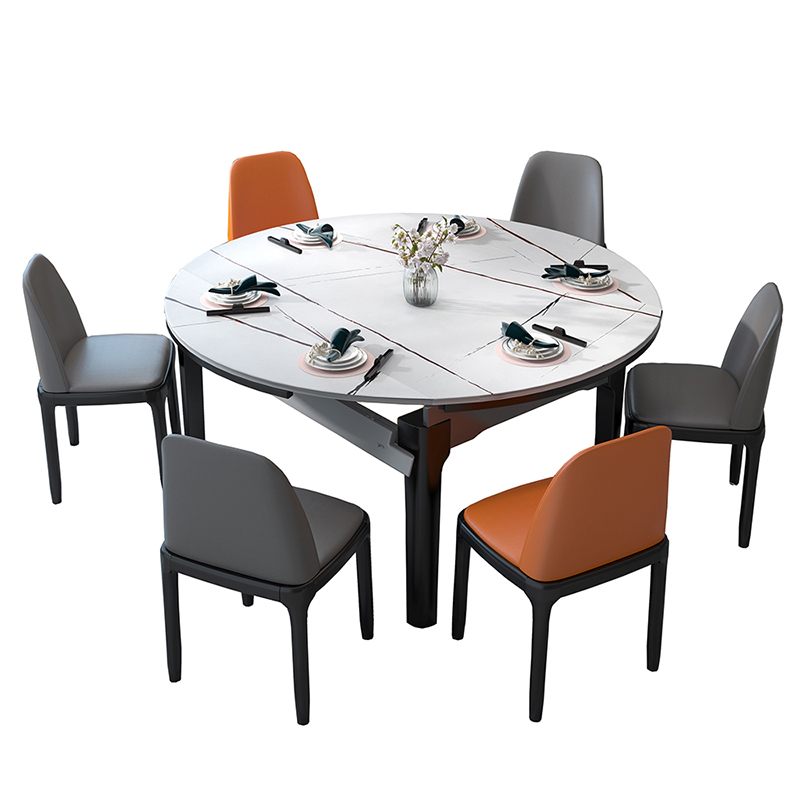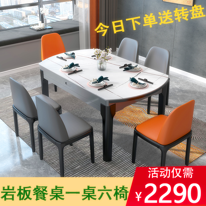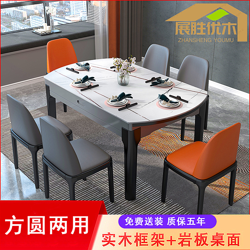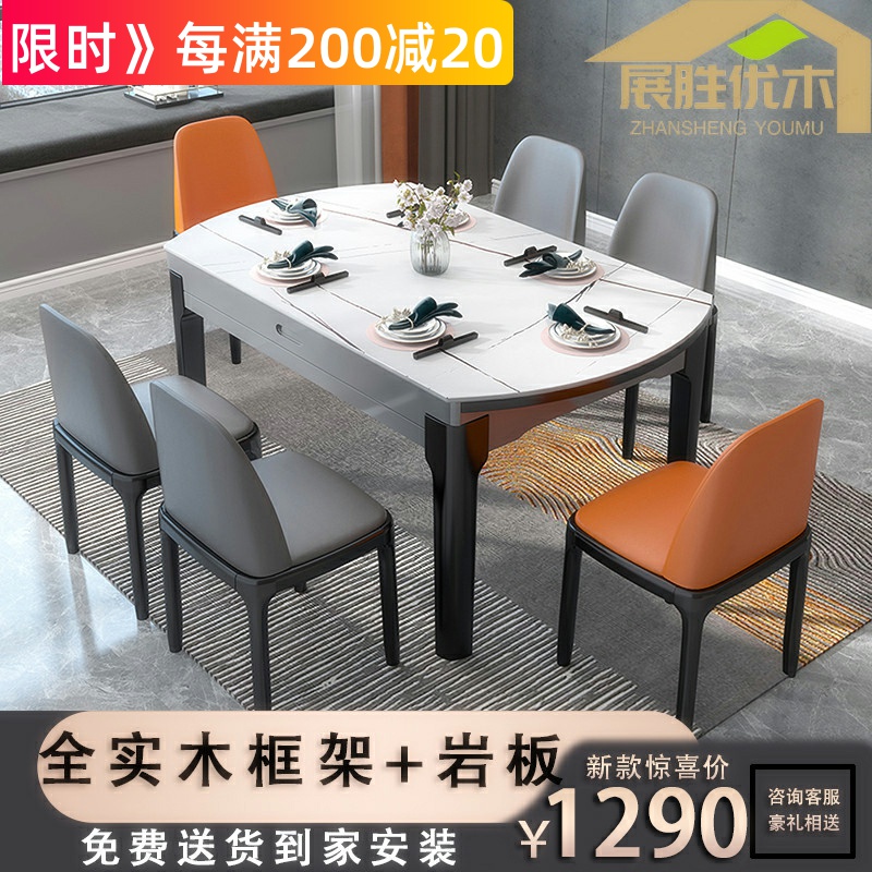 Italian-style light luxury slate solid wood dining table and chair combination modern minimalist household small apartment retractable variable square and round dual-use