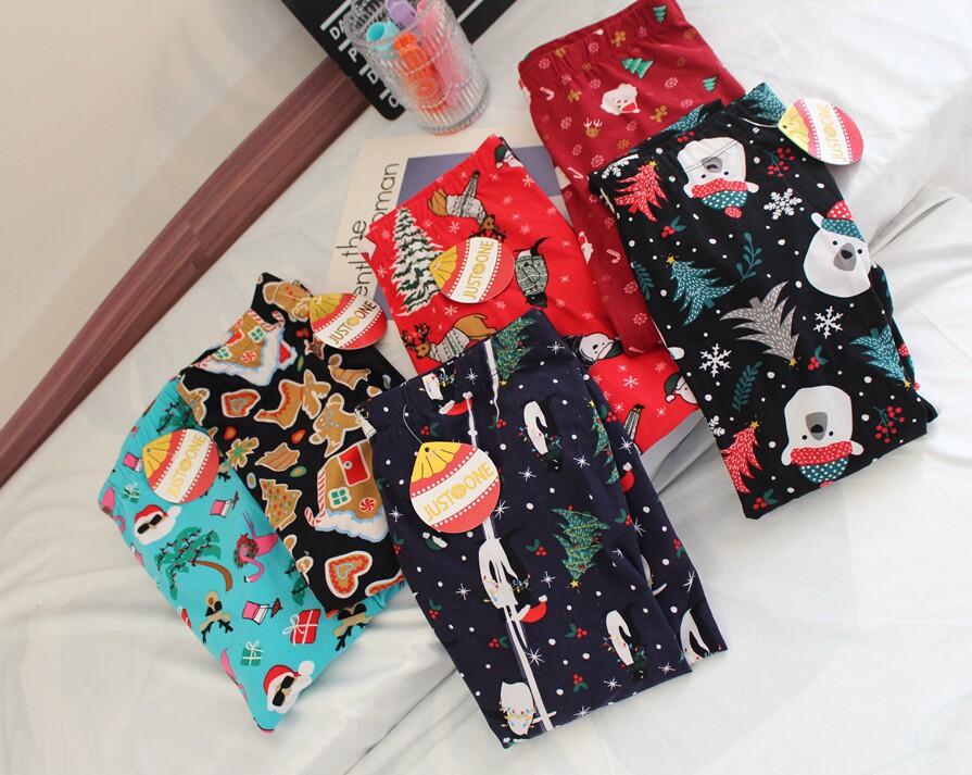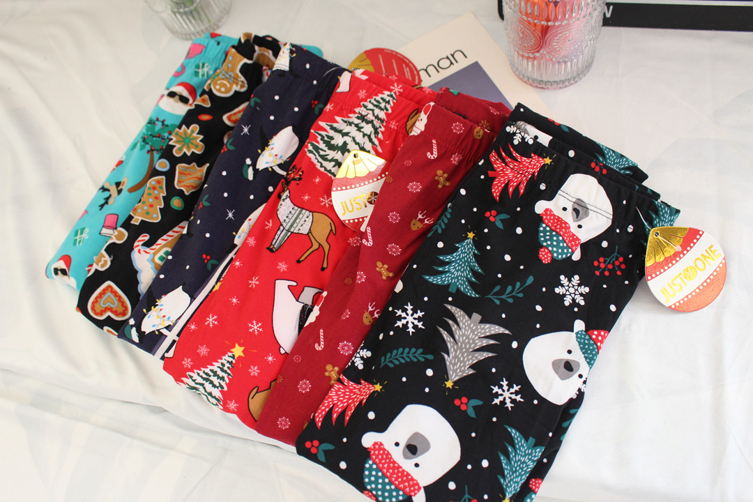 Foreign trade 2022 new Christmas themed cartoon Garduvet cute home pants casual pants tightness outside wearing pants