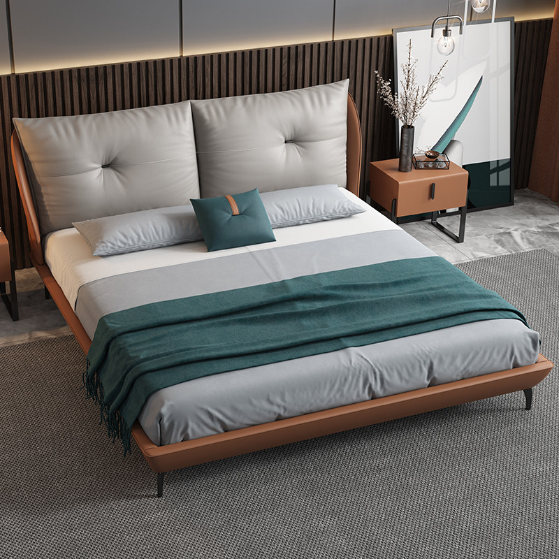 Simple leather bed Modern style Bedroom 1 8m double bed Leather Italian Nordic down light luxury leather art bed