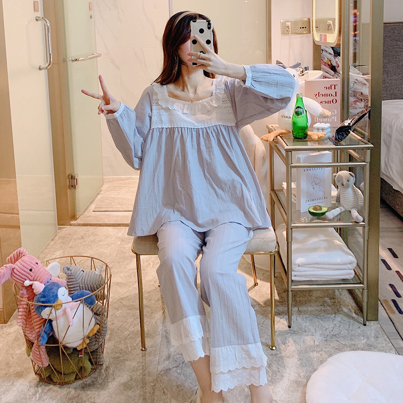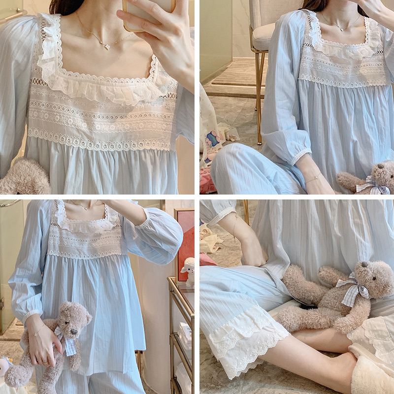 Sweet Beauty Pyjamas Woman Pure Cotton Long Sleeve Spring Autumn Style Cute Princess Wind Summer Thin student Home Clothing Two Style Suits