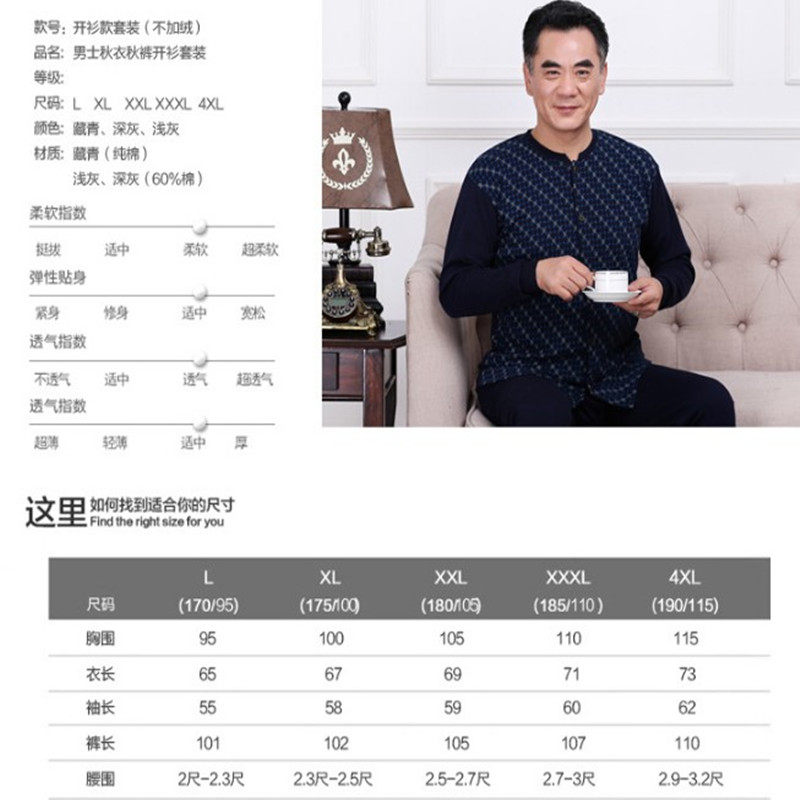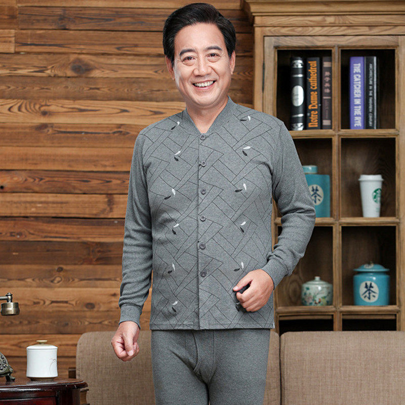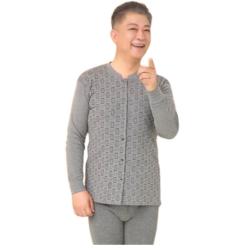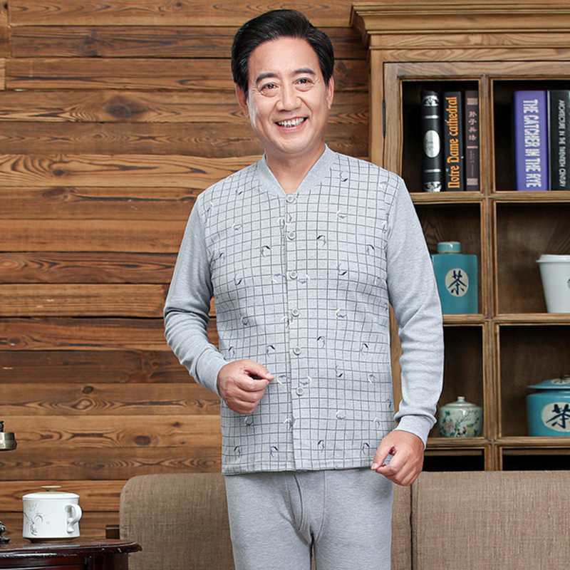 Middle-aged men's cotton sweatshirt open suit old man's front door open door autumn clothes sanitary pants dad loaded with undershirt open chest sanitary clothing