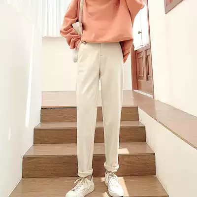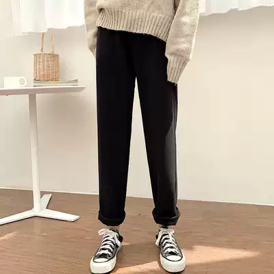 Woolen pants women's autumn and winter thickened large size suit straight tube cigarette tube pants loose fat mm high waist black Harem pants women