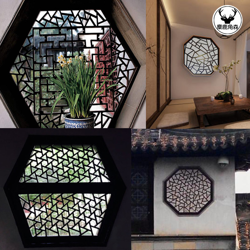 Dongyang wood carving pendant solid wood lattice flower window porch hollowed out antique round ceiling decoration carved Chinese style custom