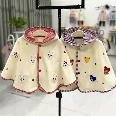 Export Japanese children's clothing baby spring hooded cloak windproof cartoon bear Cape out coat cotton