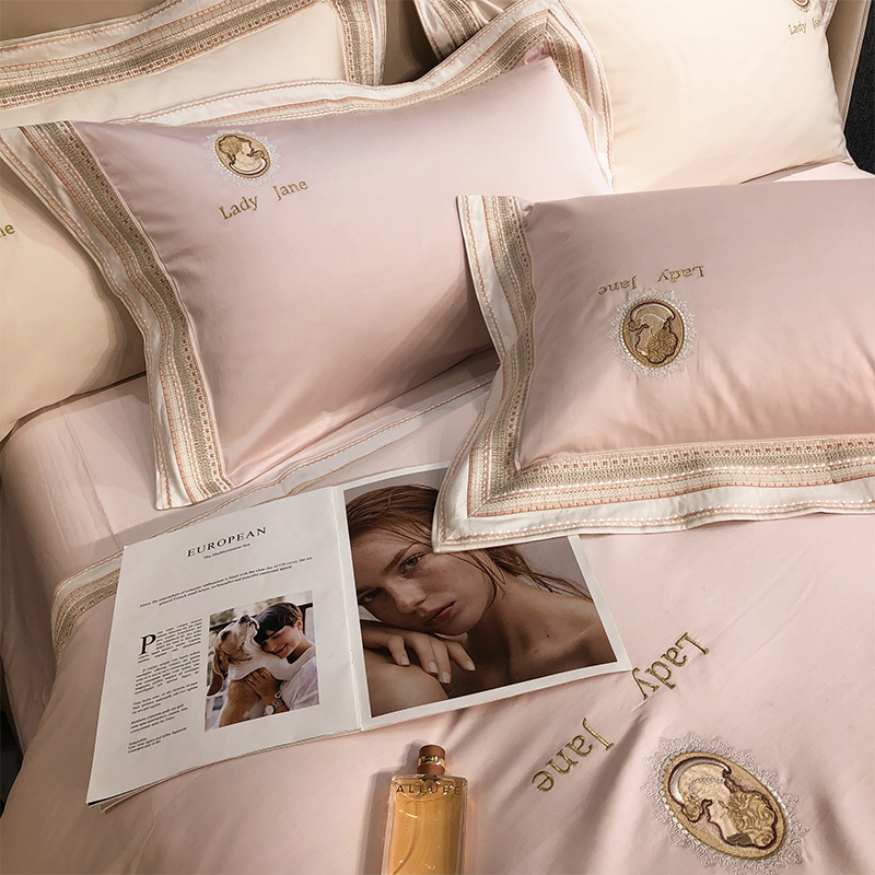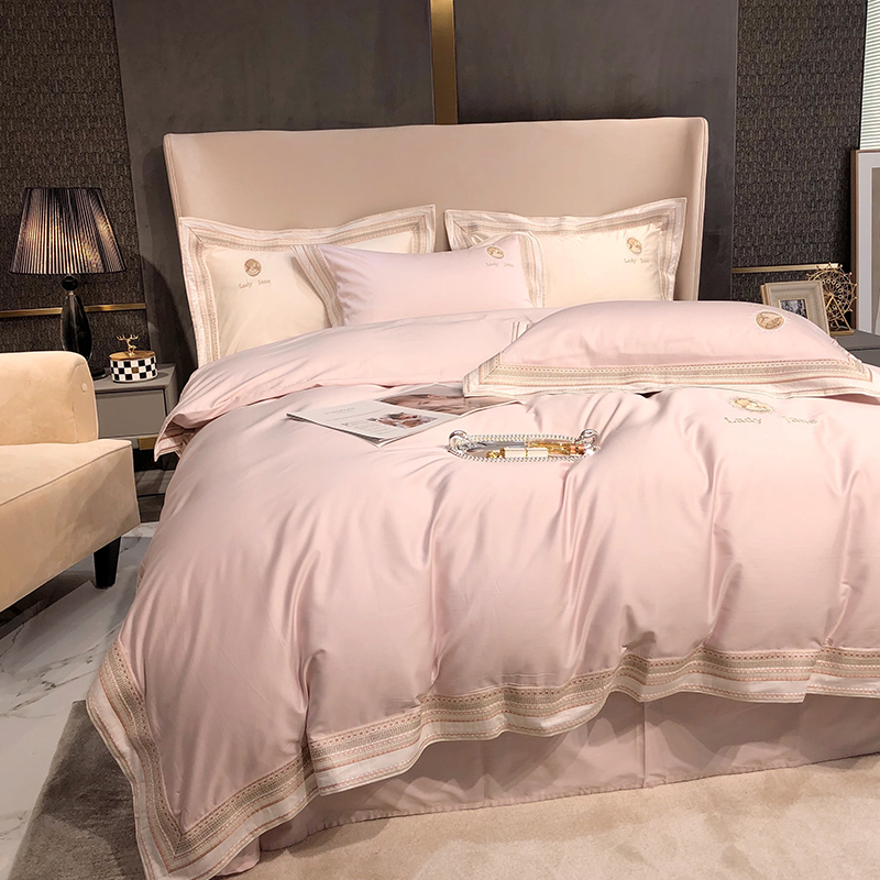 100 Xinjiang Changsuede Cotton Roland Home Textile Light Luxurious Bed bedding Four pieces of pure color Spring and autumn double bed increase