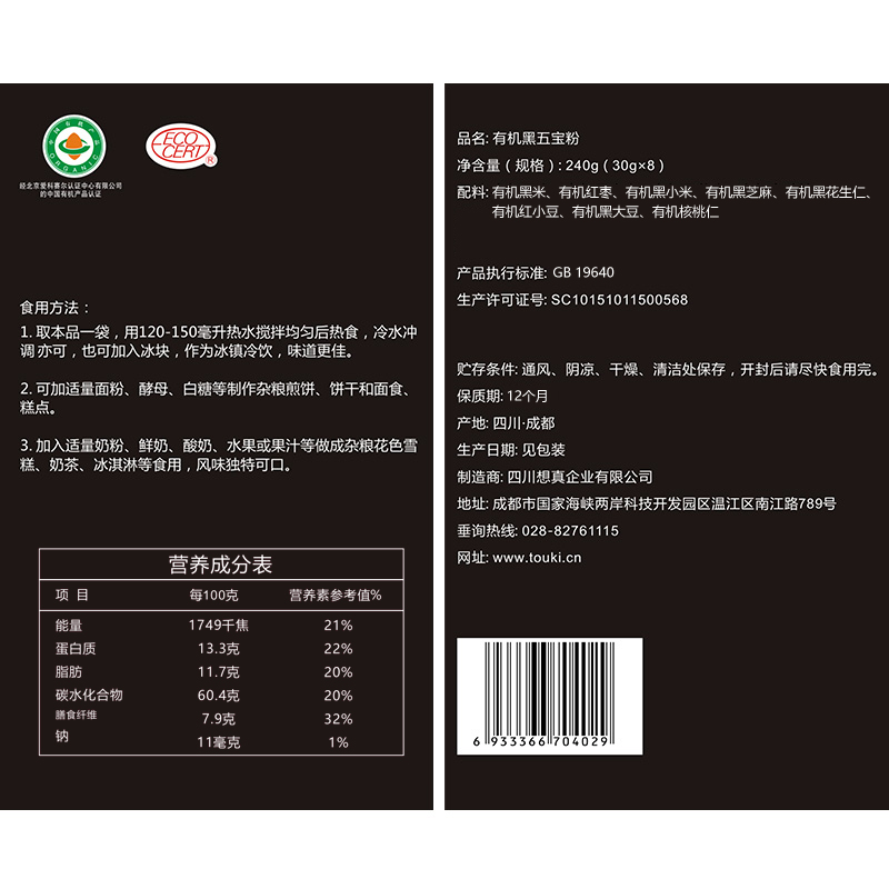 Organic black rice organic black millet organic black sesame organic white granulated sugar organic black peanut kernel organic black soybean walnut kernel