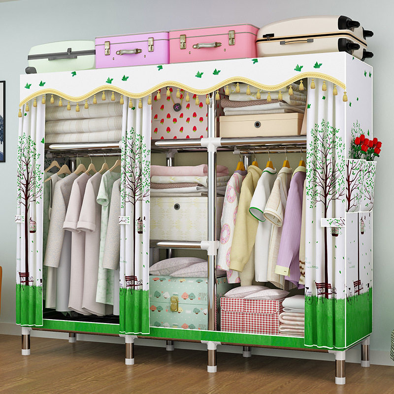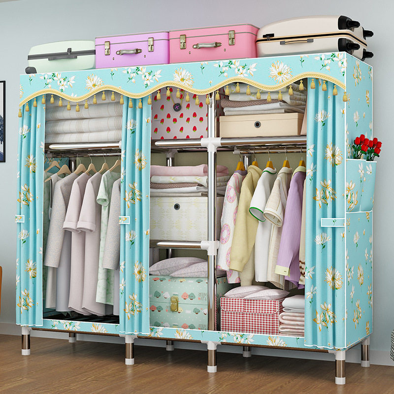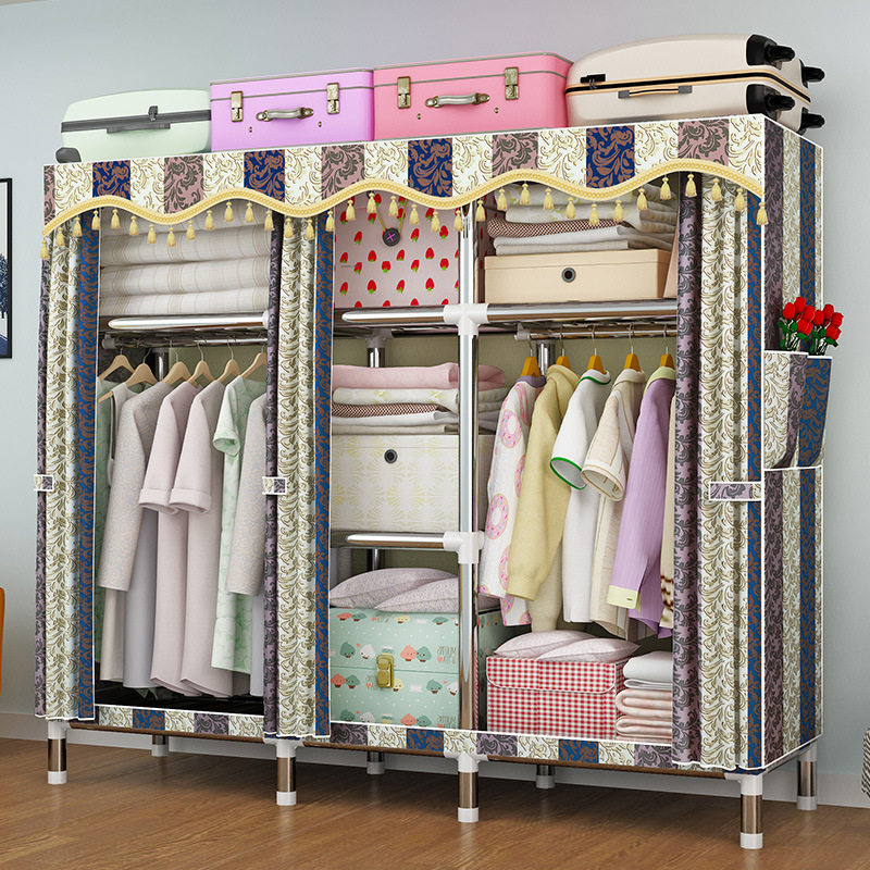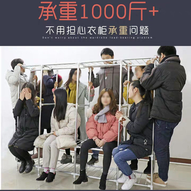 Simple wardrobe rental room with cloth wardrobe steel tube plus coarse reinforcement modern minimalist home single double containing wall cabinet