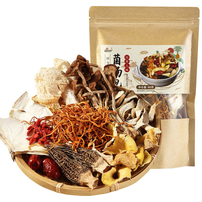 Colorful mushroom soup bun 80g dry goods hot pot soup food material mushroom fungus mushroom bag morel mushroom bamboo sun Yunnan specialty