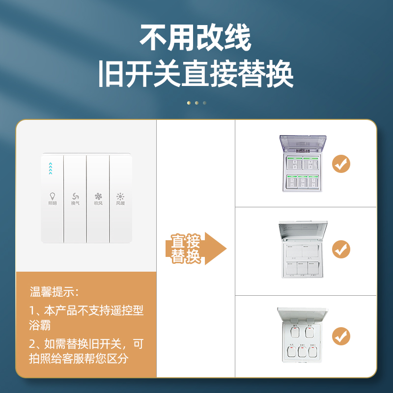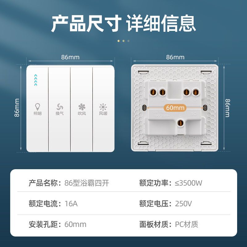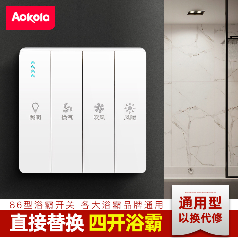 Aokola Bath Master Switch Four-open universal 86 panel toilet bathroom air heating four-in-one lamp to warm the home