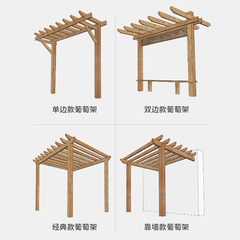 Anti-Corrosive Wood Grape Shelf Patio Outdoor Grape Shelf Carbonated Wood Terrace Floor Pavilions Solid Wood Promenade Aluminum Alloy