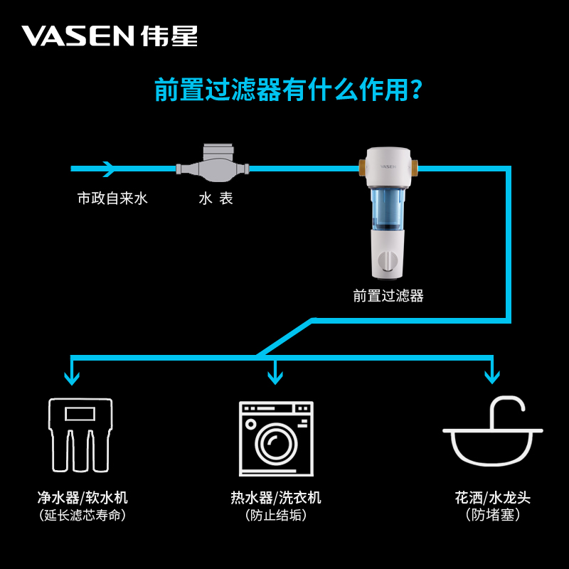 VASEN Great Star Front Filter Backwash Tap Water Pipe Filter Household 4 ton Large Flow Rate Typical