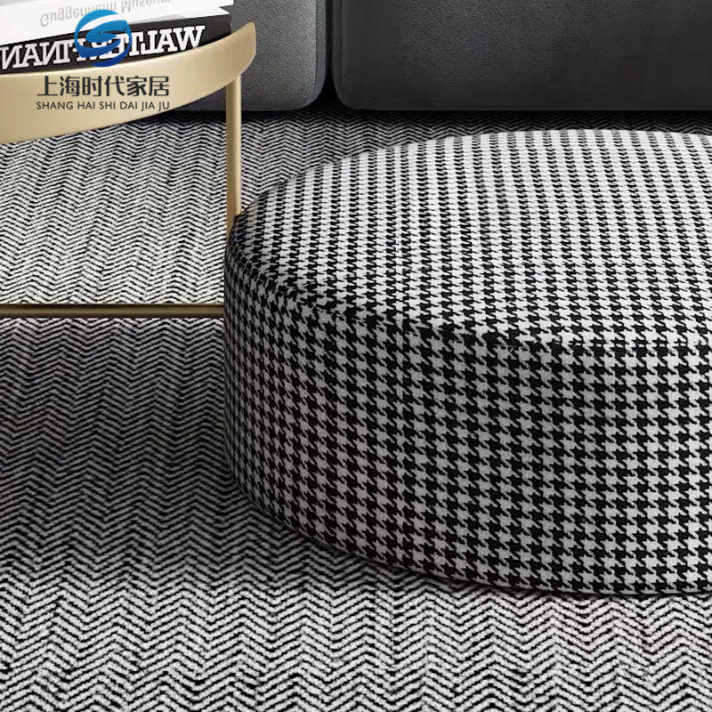 Nordic beauty modern houndstooth fabric round sofa pedal simple living room leisure coffee table stool door change shoe stool