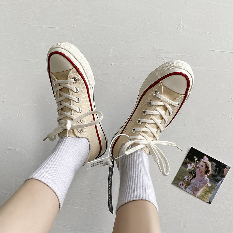 Jiang Shuying same Korean linen nude color 1970s beige canvas shoes female student shoes all-match cloth shoes ins