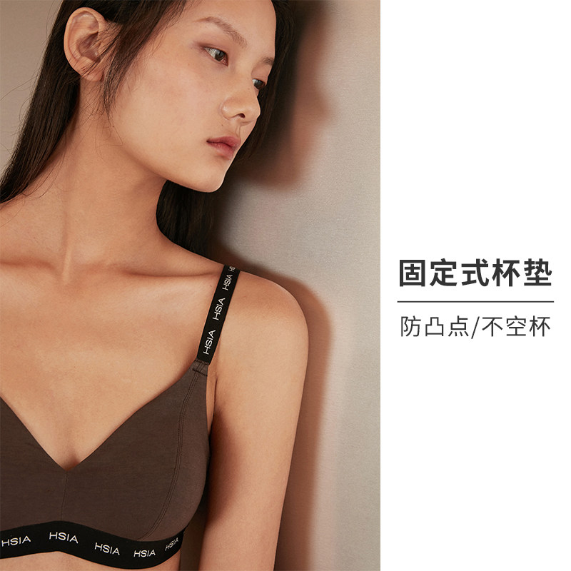 HSIA ya bra thin cotton triangle cup small chest letter shoulder strap anti-bump underwear set women