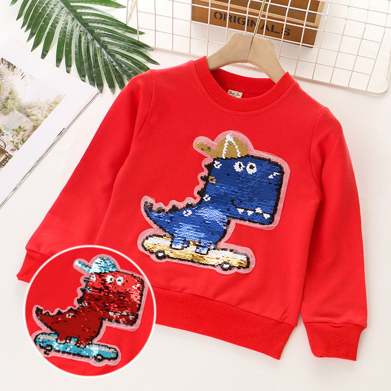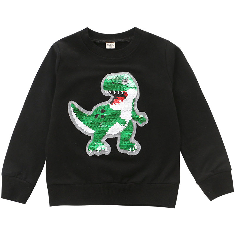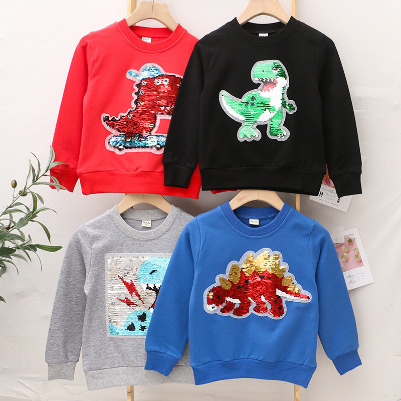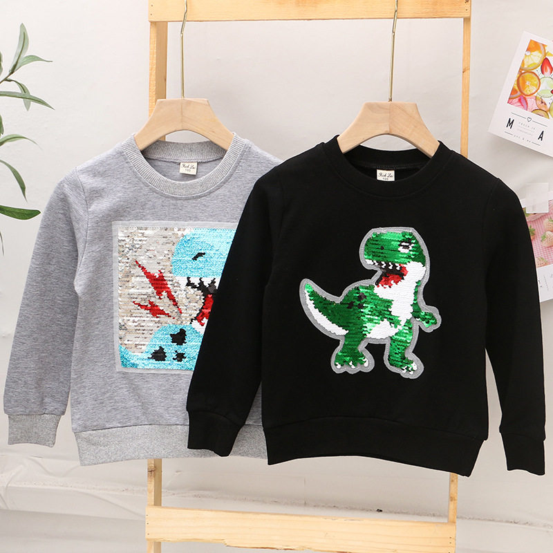 Children's clothing 2022 new boys' sweater children's spring and autumn dinosaur sequins color-changing clothes children's long-sleeved tops