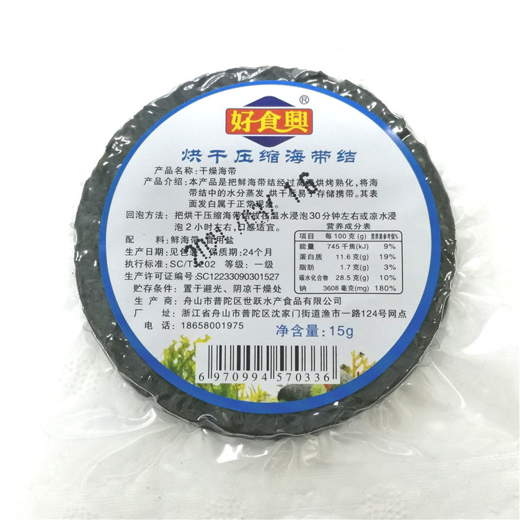 Compressed kelp strands 22 grams Compressed kelp knots 15 grams